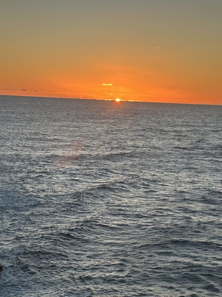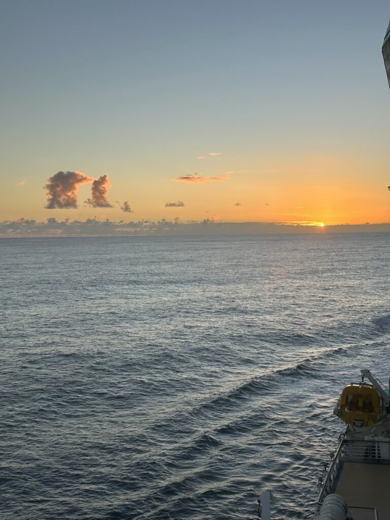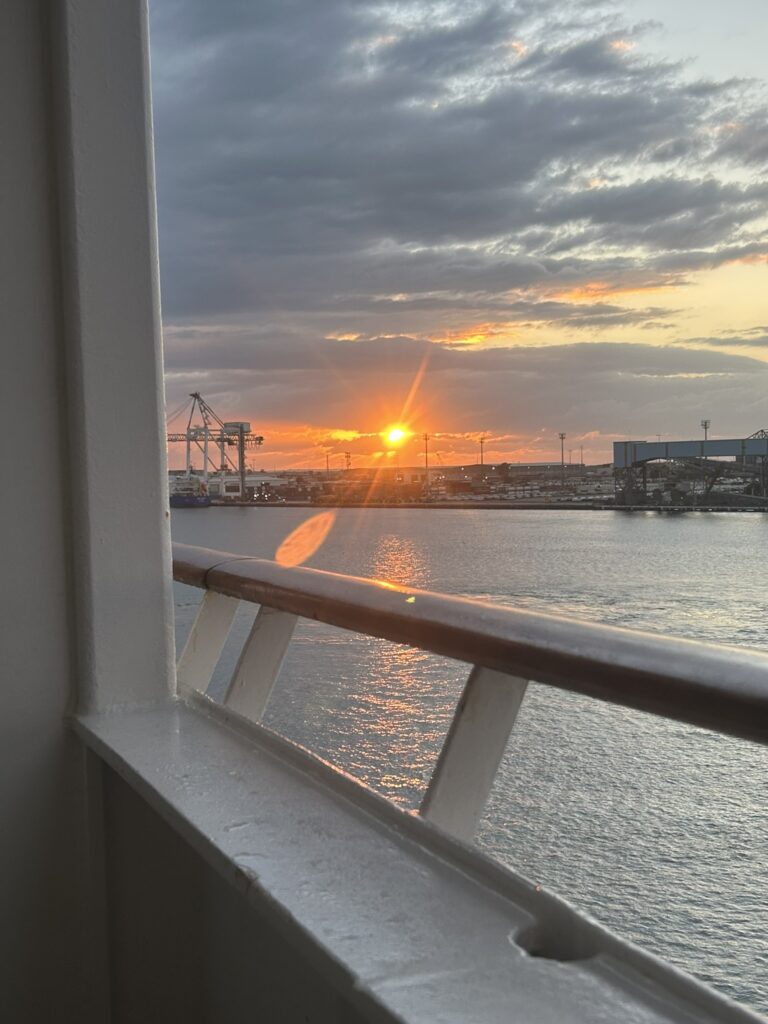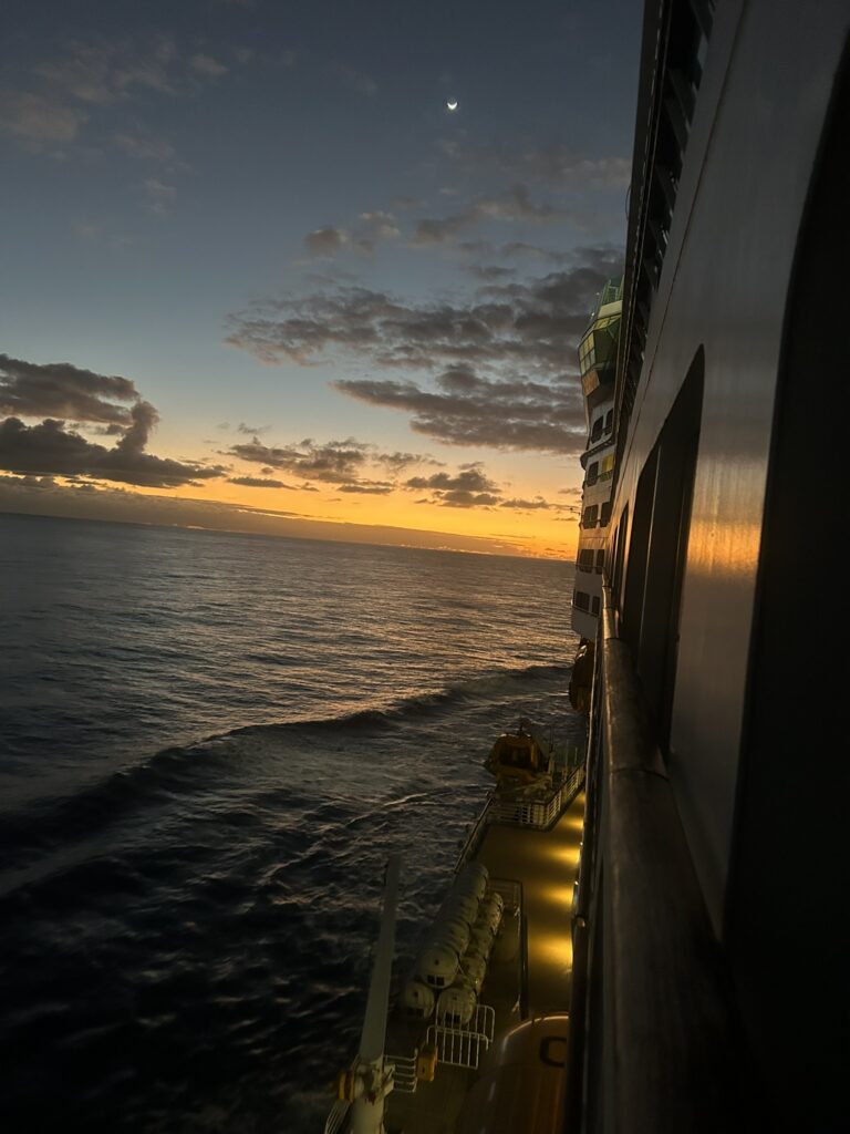 Location map and sunrise 5.55 (didn’t get all of it as the ship did a u-turn so it was facing out of the bay!)
