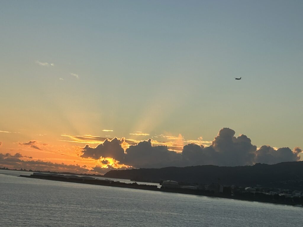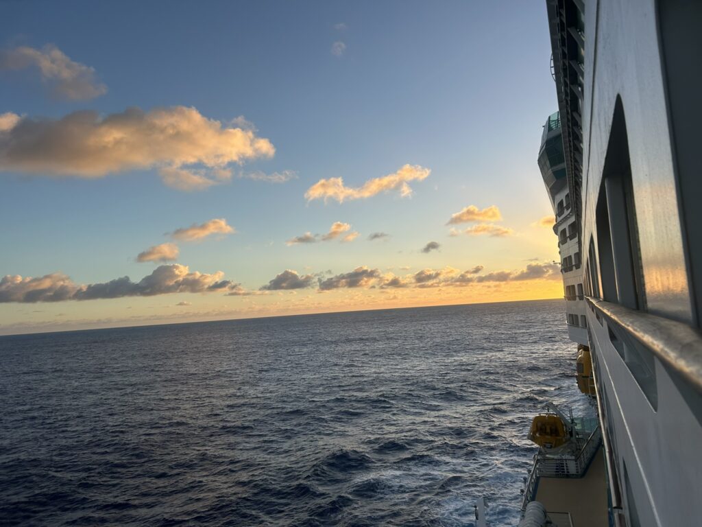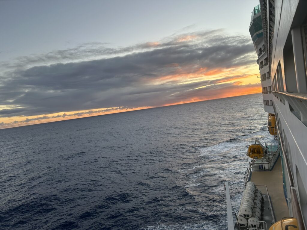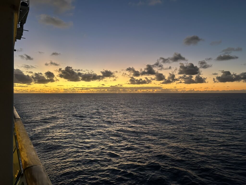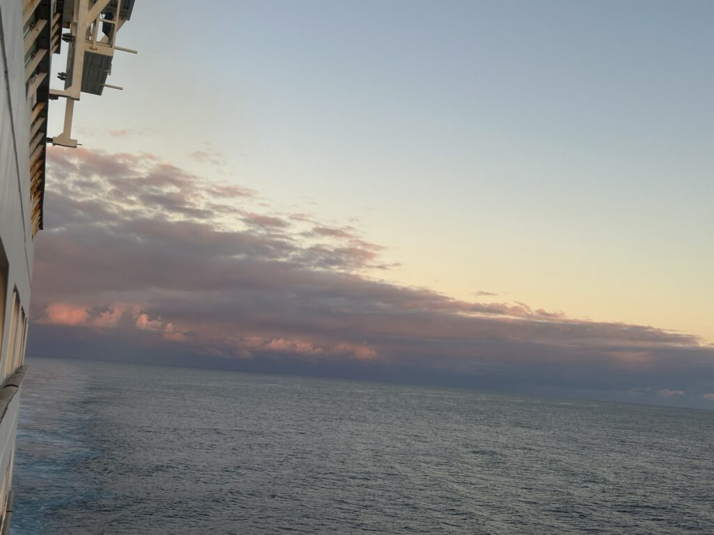 Location map and sunrise 5.55 (didn’t get all of it as the ship did a u-turn so it was facing out of the bay!)