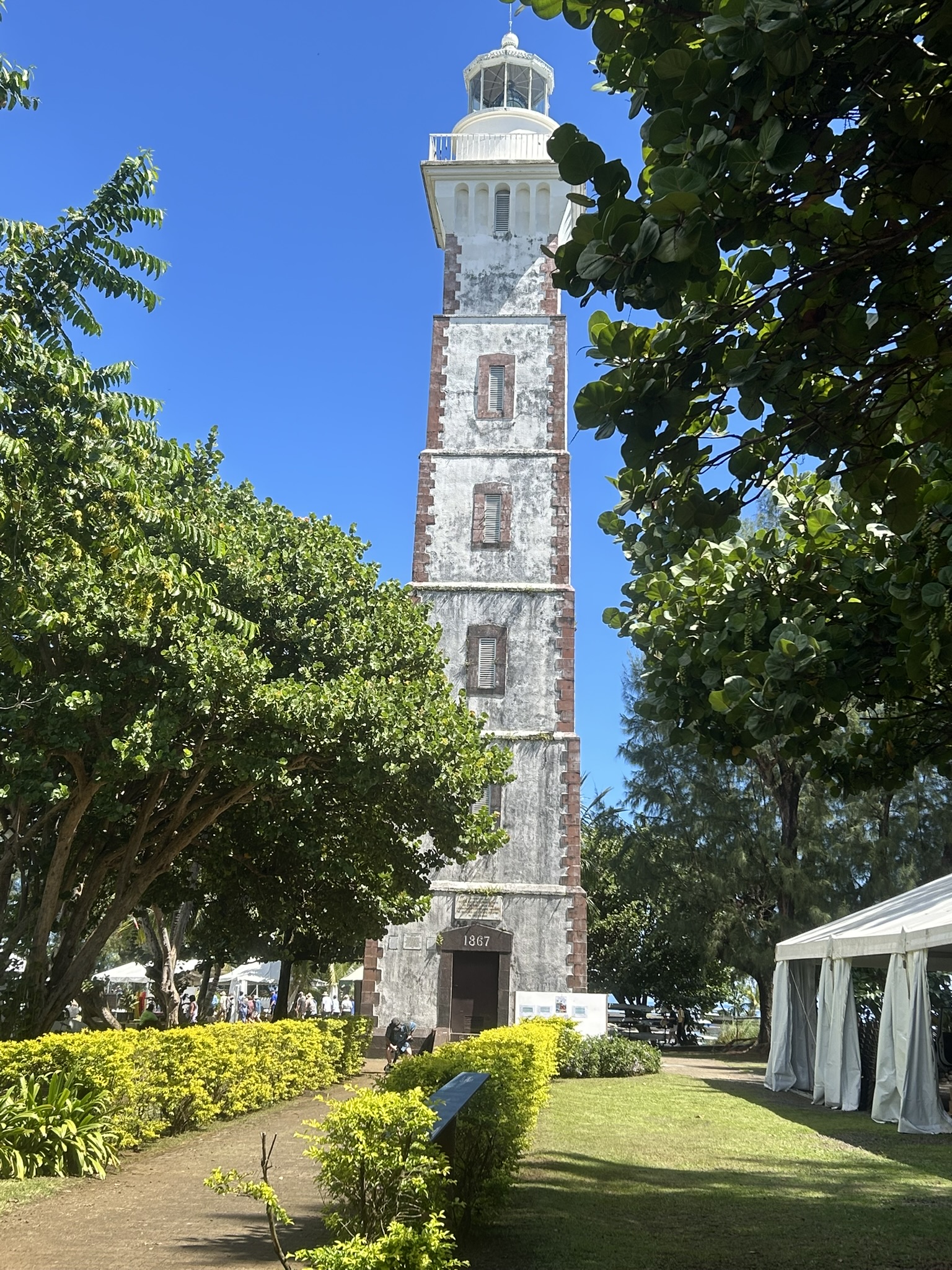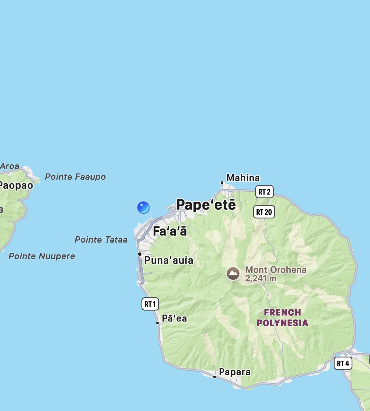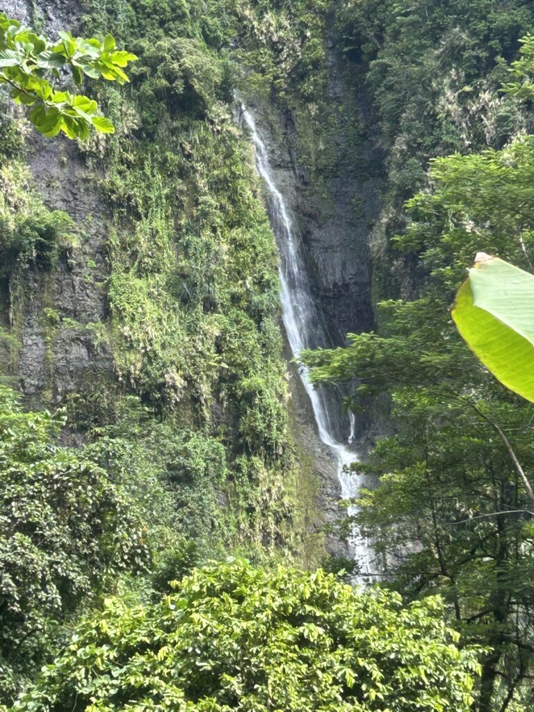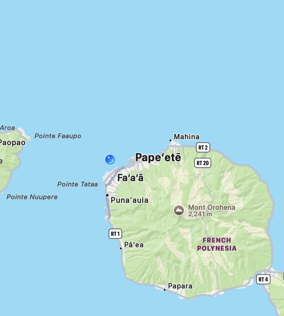 We did stop for 20 minutes at shops and restrooms, but I didn’t get out. Interesting how shopping gets a lot longer stay than sight seeing!!! Another panorama, Tahiti in the background.