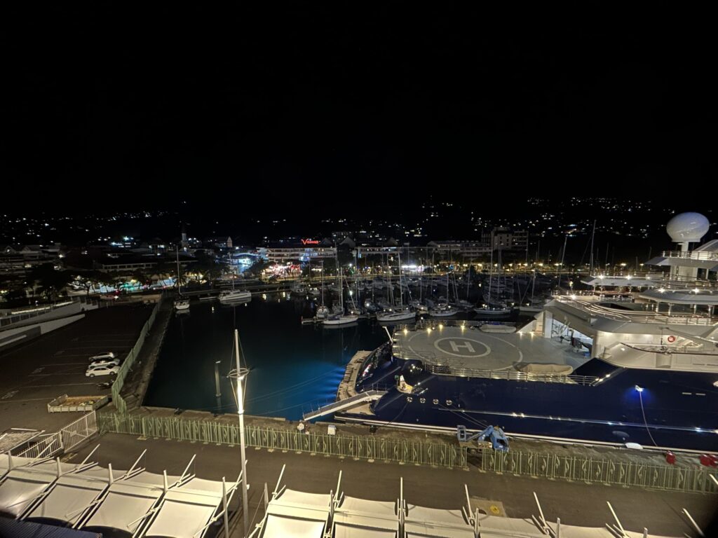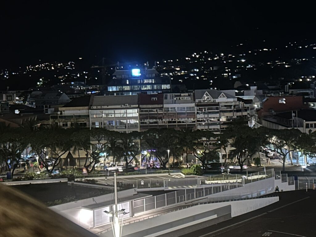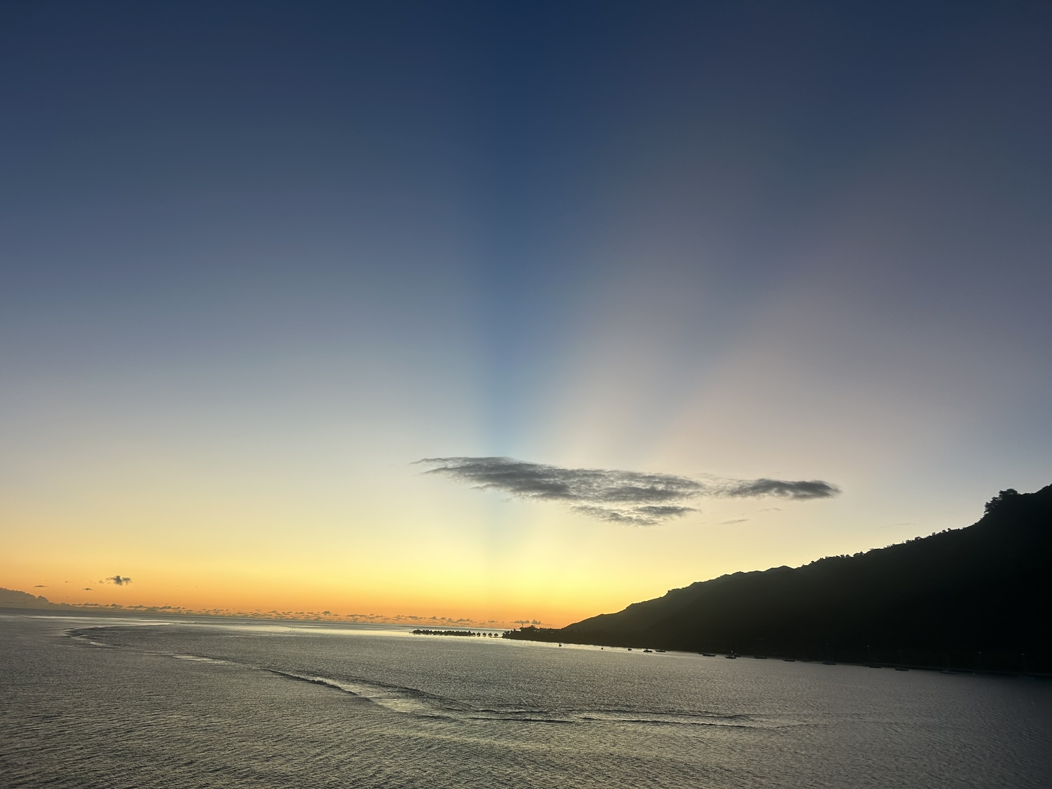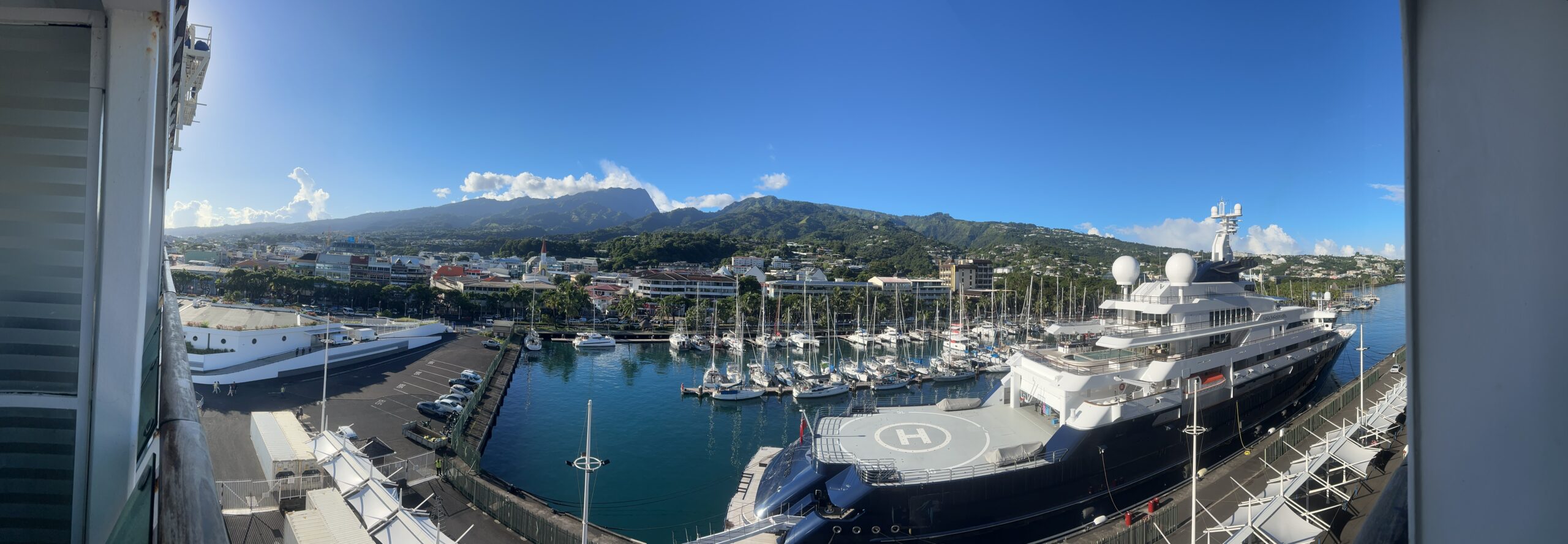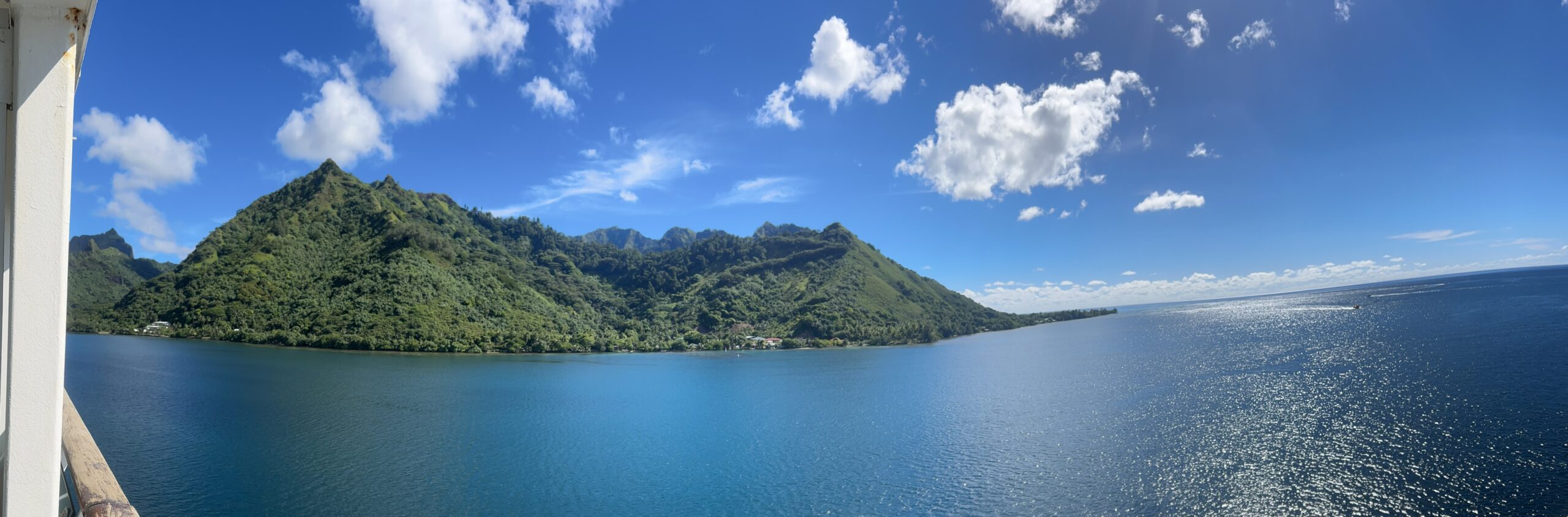 Some inconsiderate person has passed on their cold to me. I’ve got a bit of a runny nose!!! When in Tahiti all one could hear was car and emergency vehicle sirens. All I could hear in Moorea were lots of feral roosters crowing. Panorama from balcony.