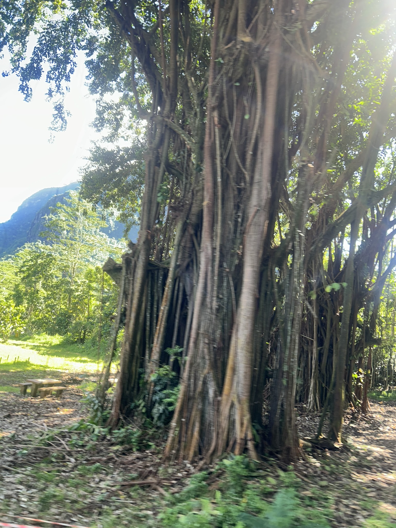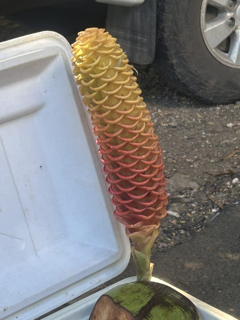 We made several more stops along the way but generally only for 2-5 minutes, so I stayed on the bus and opened a window! This is another ginger flower, completely different to yesterday’s! And a 150 year old banyan tree.