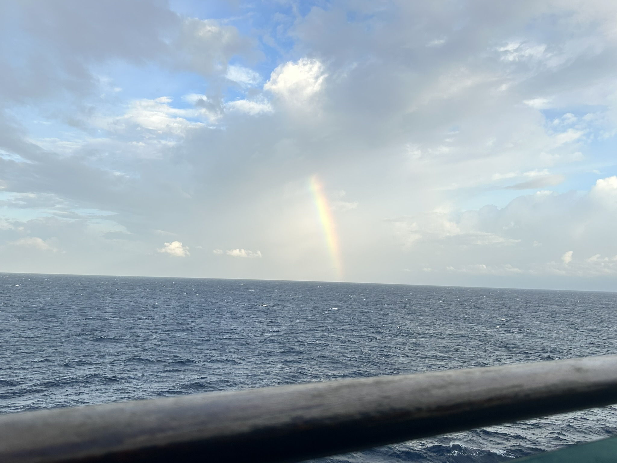 We have crossed the Equator and are now cruising through the northern hemisphere! The pool was heated this morning! Unlike the first few times I used the pool the sun wasn’t high enough to reach the pool itself. However, we have obviously travelled far enough for the sun to be higher at pool time as iit’s very bright and makes the water look e en clearer. A bit rocky today so had several splashes to the face as the water flowed back and forth.