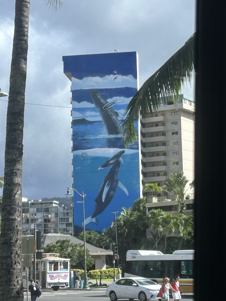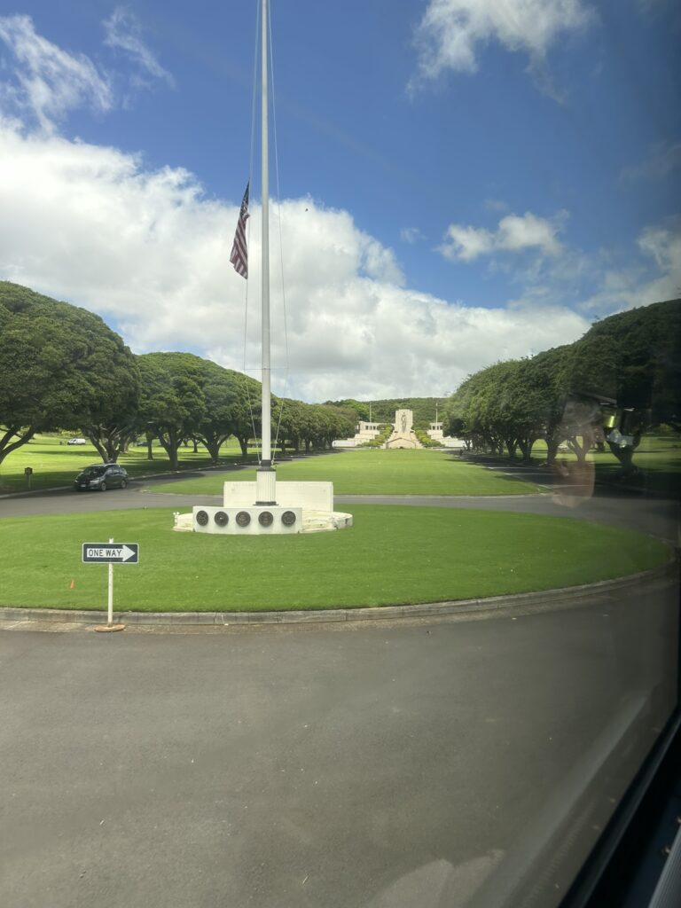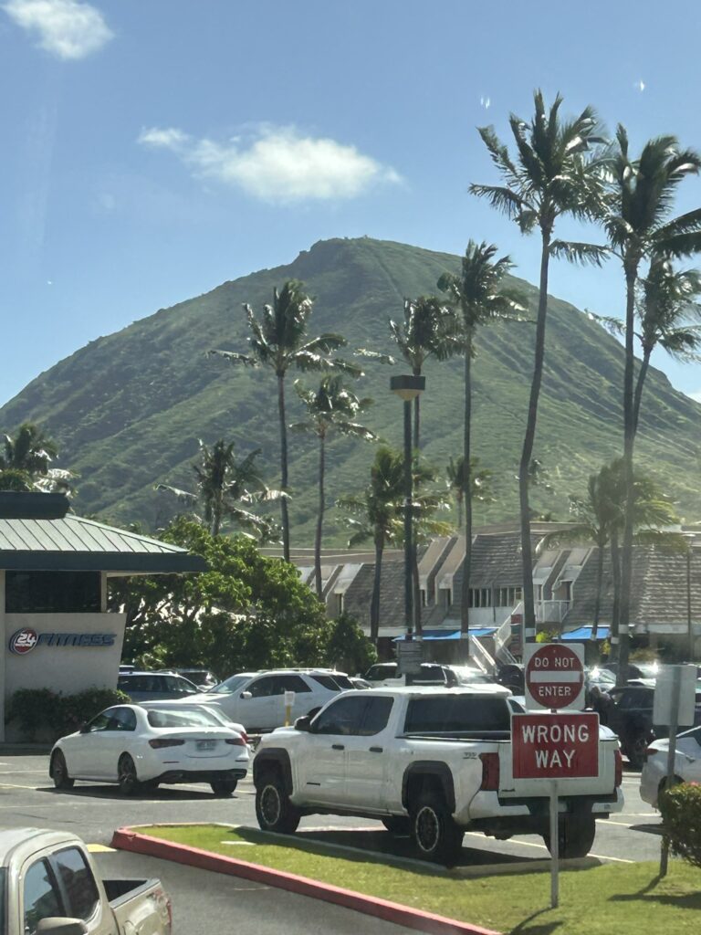 Things were a bit chaotic this morning, as everyone, even those not going ashore had to go through US Immigration. Those on organised excursions had to turn up 30 minutes before their assembly time (8.45 for me). Others had to have collected a number like Carl did yesterday. Well there were long queues and not moving very fast. Because I had a stick and an excursion I was ushered through the crowds. It looked like there were only 4 people on duty. I had all my fingers/thumbs scanned and a photo taken before being able to head off to the excursion meeting room. Then sat and waited another 40 minutes. Bus left at 10 for a 4 hour, south Oahu tour. One would have had to watch both versions of Hawaii 5-O to appreciate the tour guide as he pointed out lots and lots of places where episodes happened! He did mention other things too along the way. First stop was the Halona Blowhole Lookout, but not enough swell for the blowhole to be working.