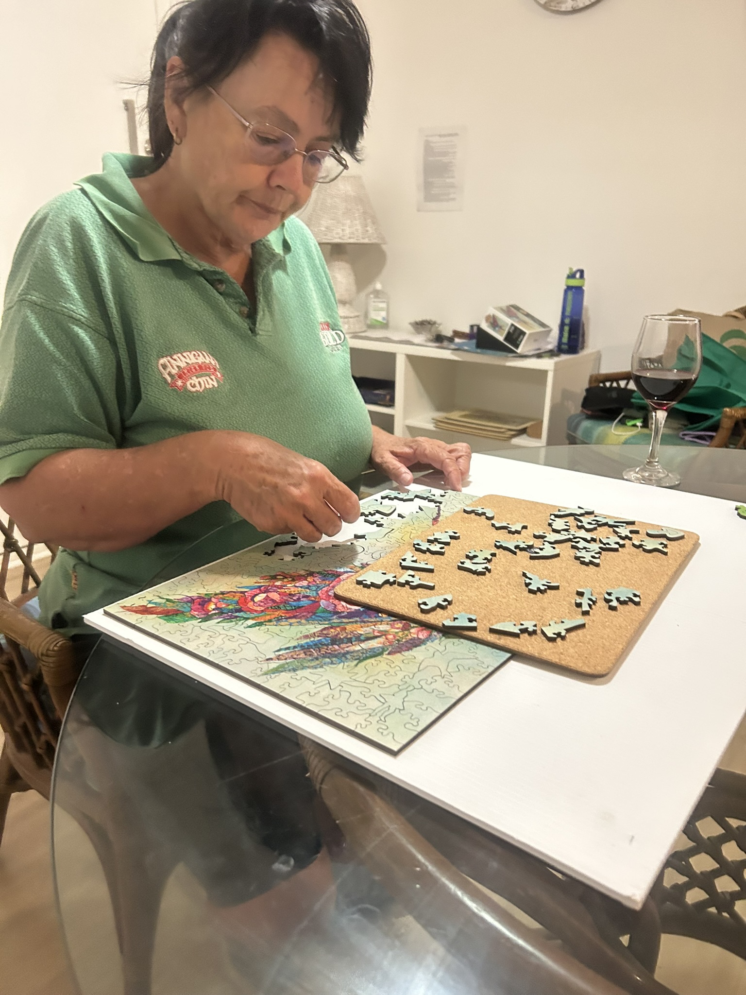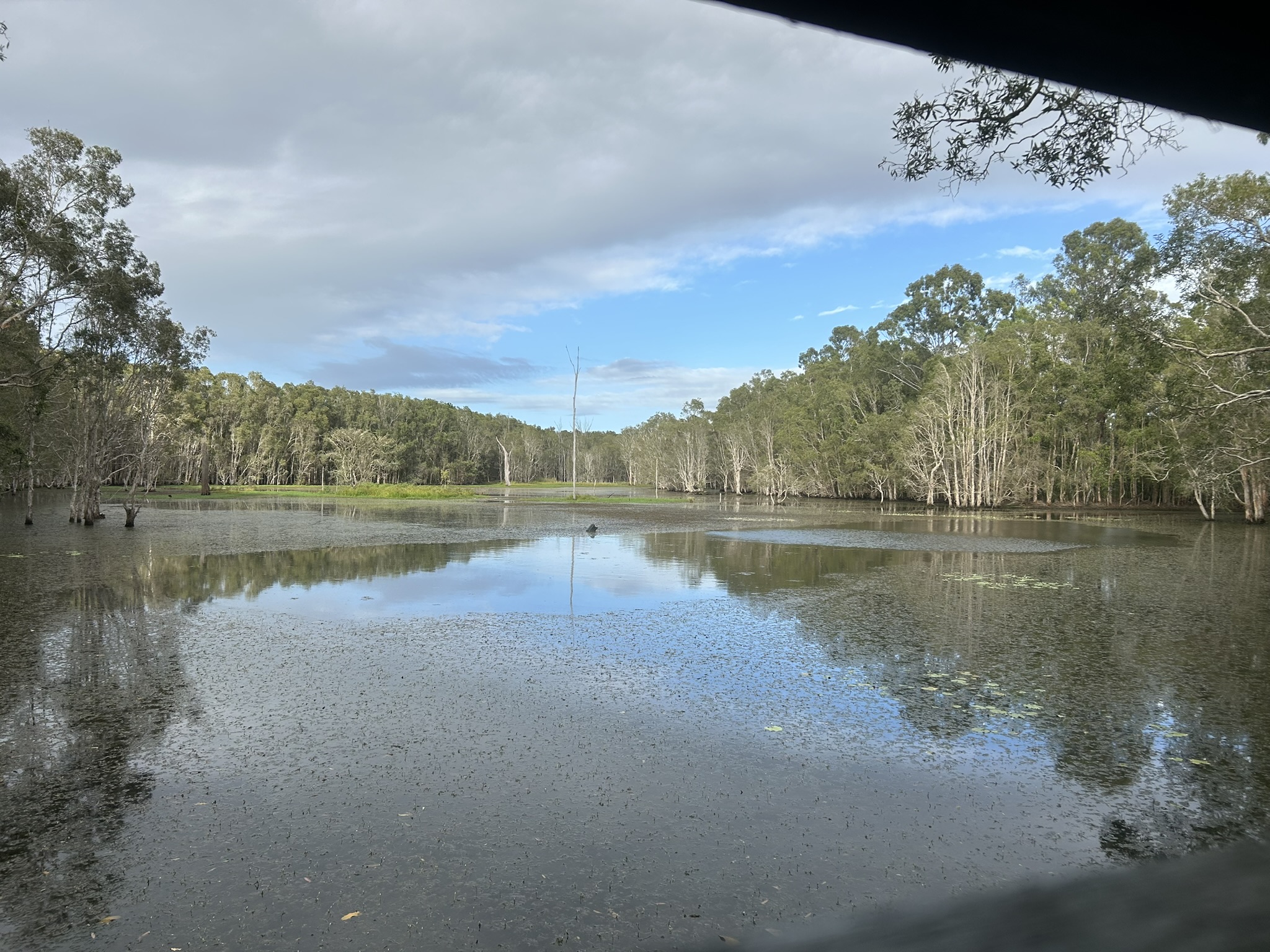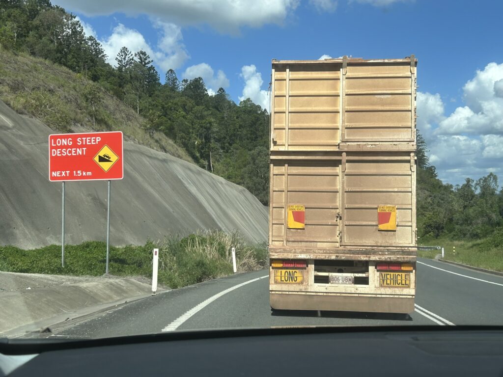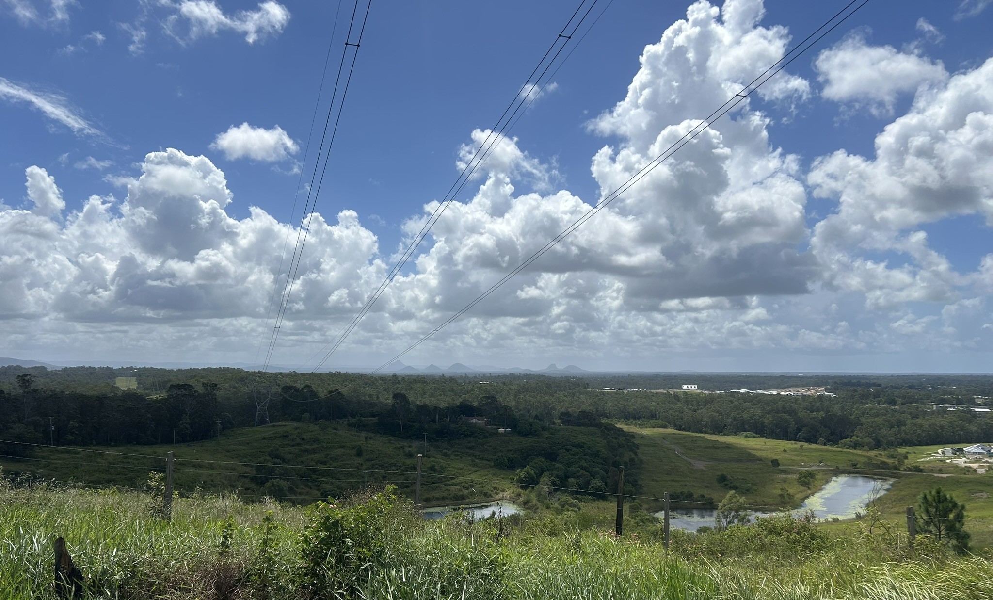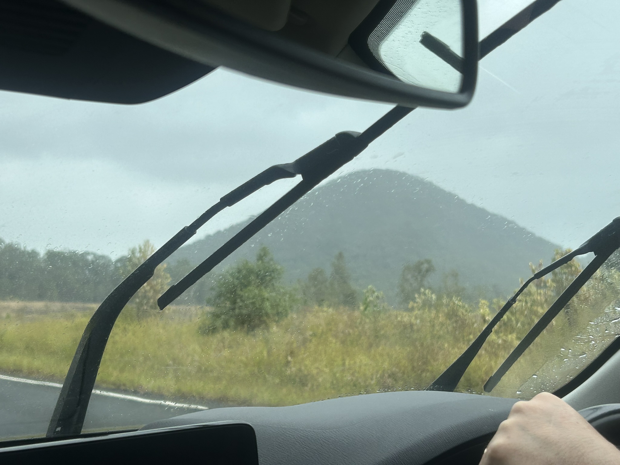 Helen and I headed out to a lookout to view the Glasshouse Mountains which are fairly close. We got within sight of the lookout and discovered that there was a very large mulching machine taking over the carpark (we didn’t actually get close enough to view it!) The park ranger advised us to visit the Tibrogargan lookout as that would be a much better view.