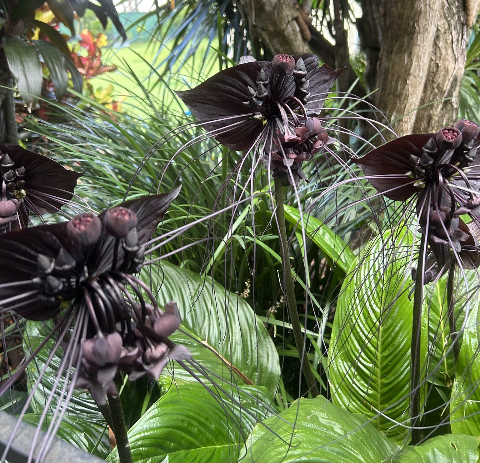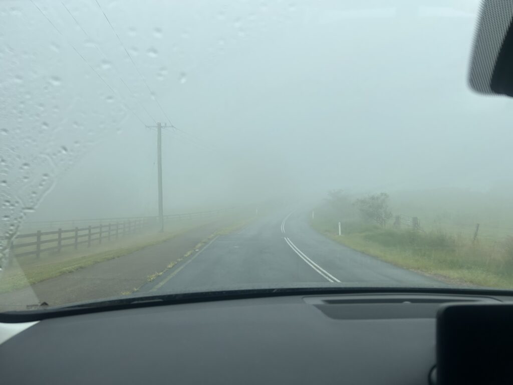 We turned left off the highway, only to find ourselves confronted by big trucks and discover the road was being worked on. The lass there said it was a steep walk to get to the lookout and we should try the lookout at Maleny. So we kept driving and climbing up and down steep gradients in the road. When we got through Maleny we were in quite thick fog, very low cloud probably! We finally found a cafe in the Mary Cairncross Scenic Reserve which has walks through the rainforest! As it was really rain forest we resisted the opportunity! Had a very nice smoked salmon turkish roll for lunch.