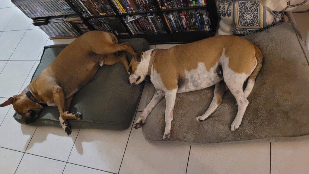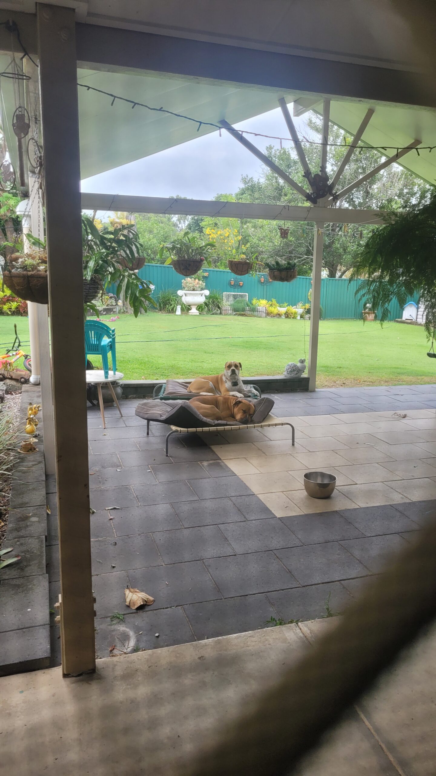 So just to finish off, here is another photo of the garden and the dogs. Rommel who is John & Tasha’s and Maria’s Chloe.