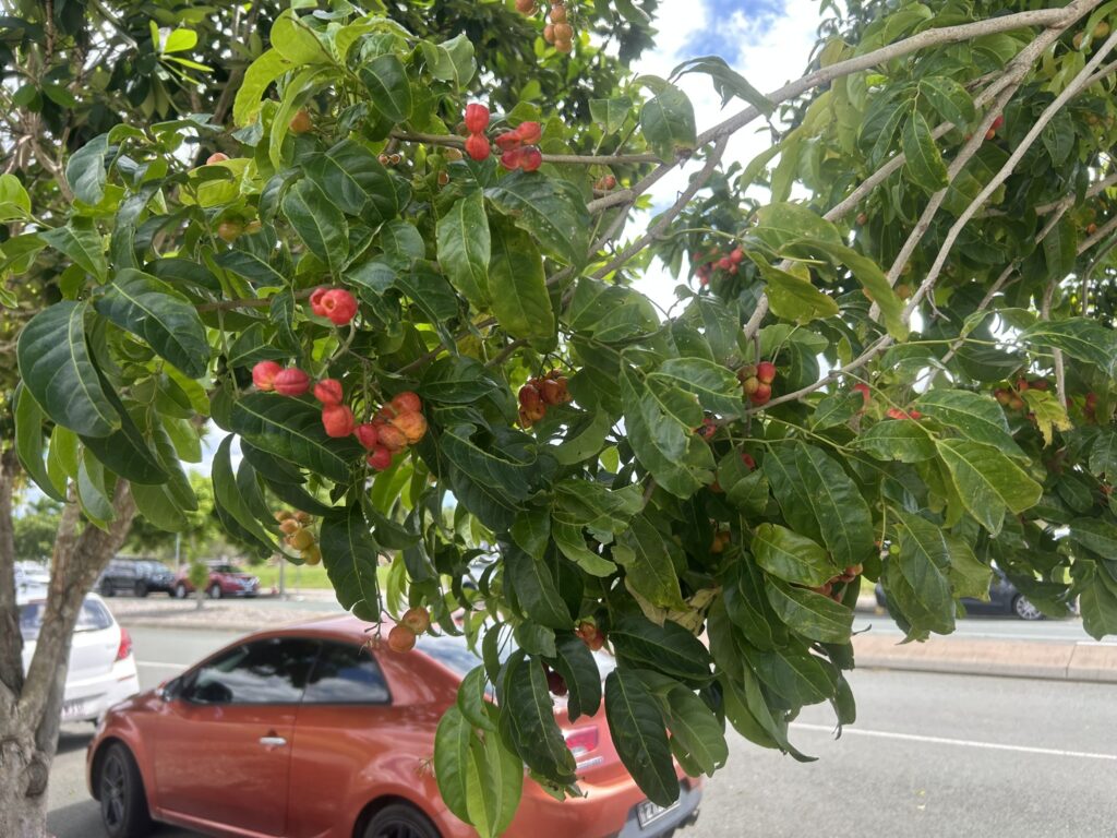 A few more images from the splash park. Interesting fruit in a tree, a mynah and a mudlark!