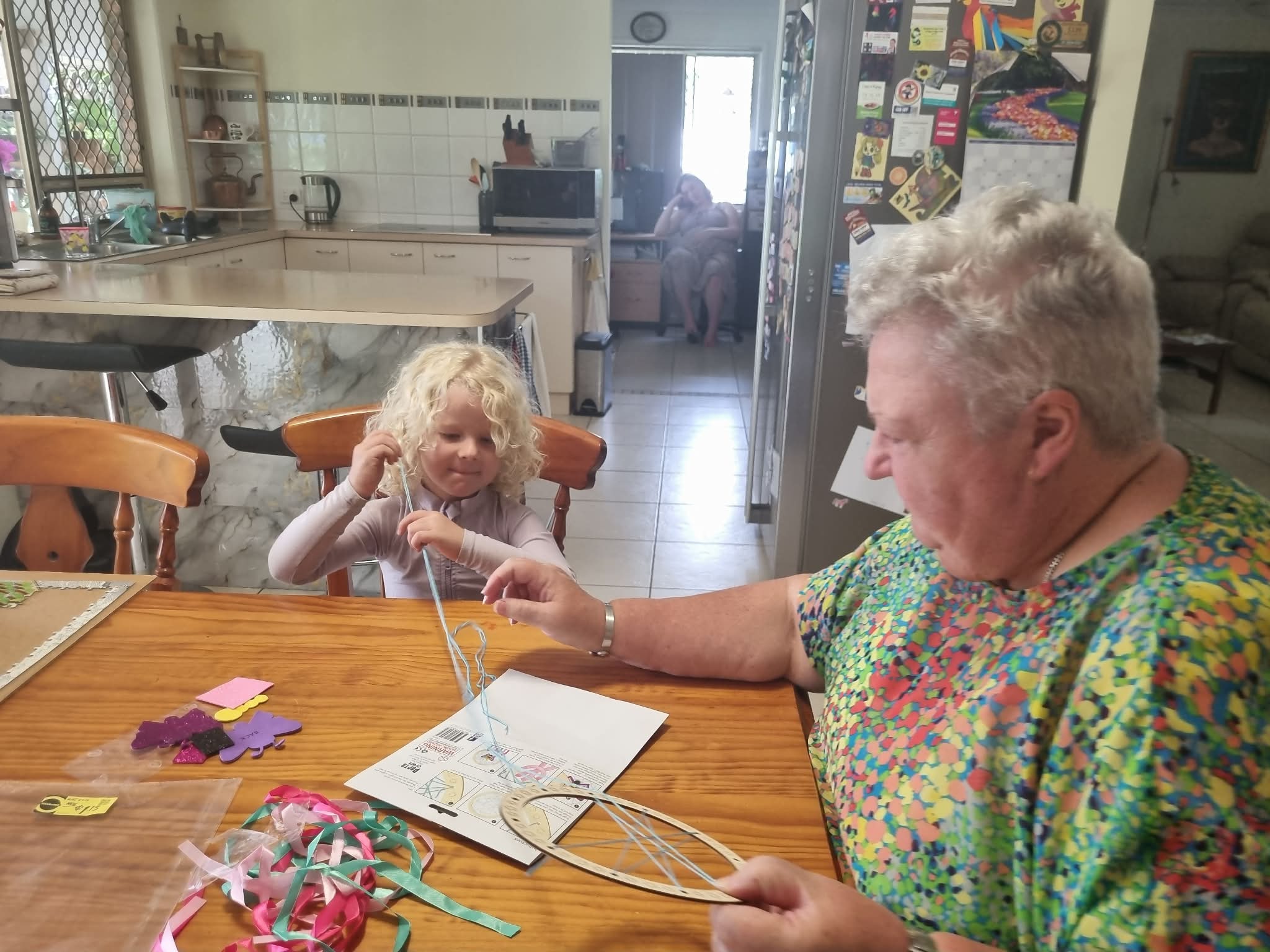 Once home it was craft time. I helped Charlotte make a dream-catcher whilst Maria and Archer did some model making. Tasha watching in the background!
